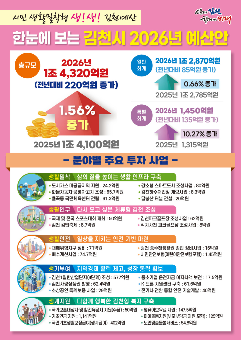 김천시, 2026년도 예산안 1조 4320억 원 편성