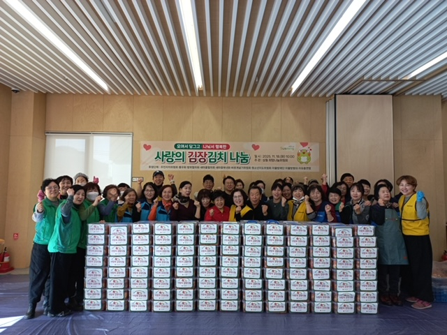 희망나눔위원회를 포함한 11개 협력 단체 회원 60여 명이 참여해 김장김치 300상자(650만 원 상당)를 준비했으며 관내 취약계층 300가구에 전달했다.