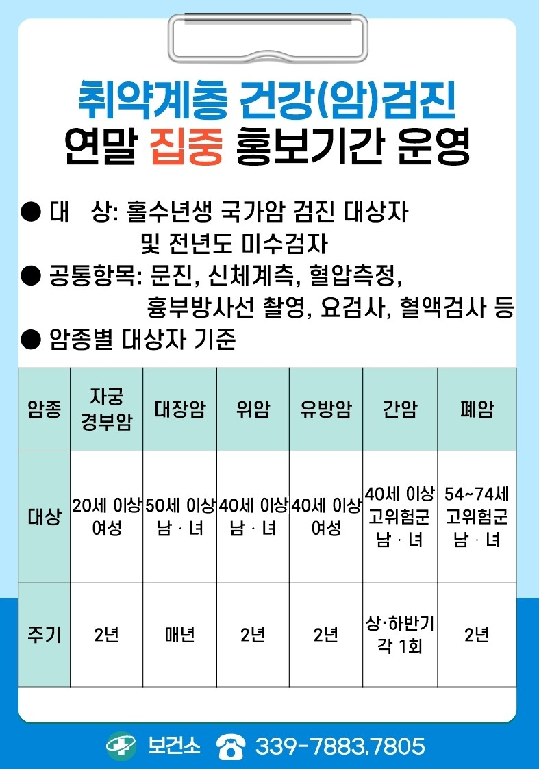 - 7영천시, 취약계층 건강(암)검진 연말 집중 홍보기간 운영