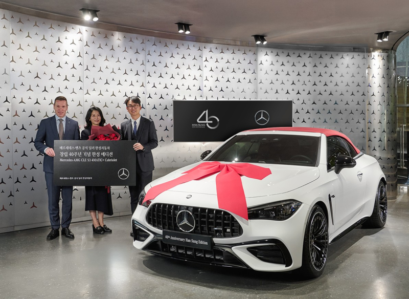 이날 인도된 차량인 한성에디션 ‘메르세데스-AMG CLE 53 4 MATIC+ 카브리올레’는 마누팍투어(MANUFAKTUR) 오팔라이트 화이트 컬러와 레드 소프트탑, AMG 나이트 패키지 등 정교하게 구성된 전용 사양이 특징이다. 한성자동차가 특별 구성한 옵션 패키지를 통해 주행 감성과 디자인 완성도가 한층 더 강화된 모델이며 총 10대 한정으로 출시됐다.