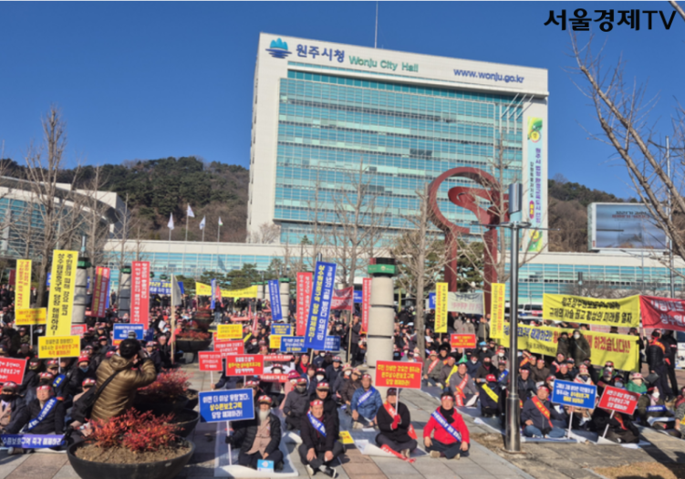 횡성군민 1100여 명, 원주시청 앞서 '상수원보호구역 해제' 대규모 집회… "38년 규제 피해 더 못 참아"