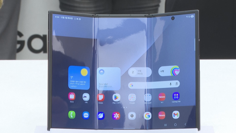 삼성전자가 두 번 접는 폴더블폰 '갤럭시 Z 트라이폴드'를 공개하며 침체된 모바일 시장에 승부수를 던졌습니다. 10인치 화면으로 생산성을 극대화한 가운데, 폴더블폰 시장 판도를 바꿀지 주목됩니다. 김혜영 기잡니다.