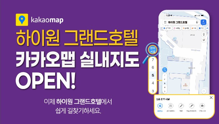 카카오맵 애플리케이션 실내지도 서비스는 공항, 기차역, 쇼핑몰과 같이 대형 실내 공간의 정확한 층별 위치 정보와 편의시설 안내를 제공하는 서비스다. 이번 서비스 도입으로 하이원은 디지털 편의성을 더해 한층 향상된 고객 경험을 선사할 것으로 기대된다.