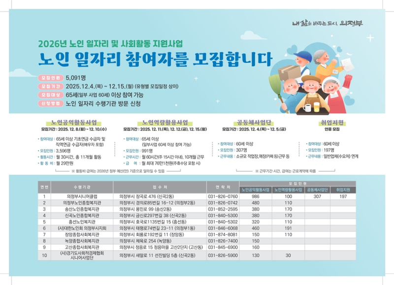 의정부시, 2026년 노인 일자리 5,091명…100명 더 늘린다