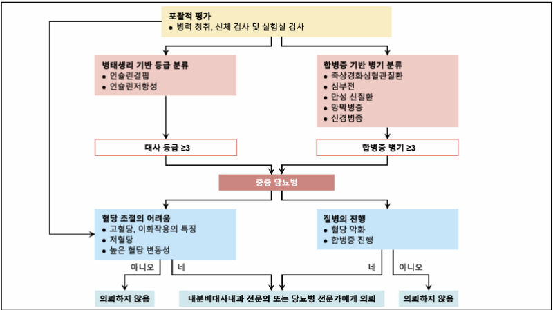 두 번째 기준인 ‘합병증 단계’는 병태생리 기반의 대사 등급을 보완하는 분류로, 당뇨병으로 인한 심장, 신장, 눈, 신경 등 주요 장기 손상 정도를 평가한다.