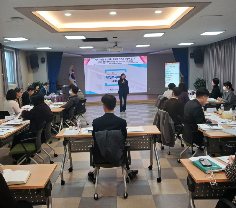 4층 대회의실에서 열린 '2026 영천교육계획 수립' 1차 협의회는 학생, 교직원, 학부모 그리고 지역사회가 함께 만드는 지속 가능한 미래를 목표로 한 중요한 자리였다.