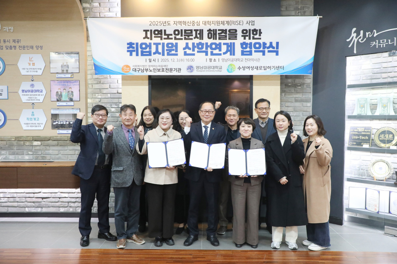 특히 대구남부노인보호전문기관과 수성여성새로일하기센터가 보유한 현장 노하우와 네트워크는 영남이공대학교 학생들에게 취업과 실무 경험을 제공하는 데 중요한 역할을 할 것으로 기대된다. 이 같은 협력은 향후 다른 지역현안 해결 분야로의 확장도 가능한 모델로 평가된다.