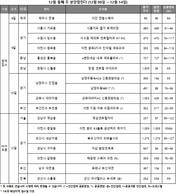 - [부동산 캘린더] 내주 7849가구 공급…"연말 맞이 풍성한 물량"