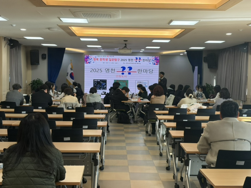 [서울경제TV 영천=김아연 기자] 경상북도영천교육지원청은 지난 4일 영천교육지원청 대회의실에서 관내 중학생 3학년 23명(6개팀), 지도교사 6명이 참가한‘2025 영천 궁금한마당’을 개최했다.