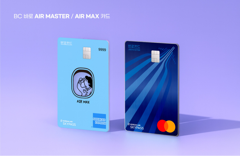 BC 바로카드(자체발급카드) 라인업은 ▲에어 마스터(AIR MASTER) ▲에어 맥스(AIR MAX) 총 2종이다. 기본 대한항공 스카이패스 마일리지 적립에 주유∙교통∙아파트관리비와 같은 생활 밀착 영역까지 마일리지로 적립된다.