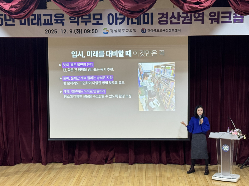 [서울경제TV 경산=김정희 기자] 경상북도교육청정보센터(관장 강정진)에서는 9일, 경산권역(경산ㆍ청도ㆍ영천) 학부모 130여 명이 참석한 가운데 「2025년 미래교육 학부모 아카데미 경산권역 워크숍」을 성황리에 개최하였다고 밝혔다.