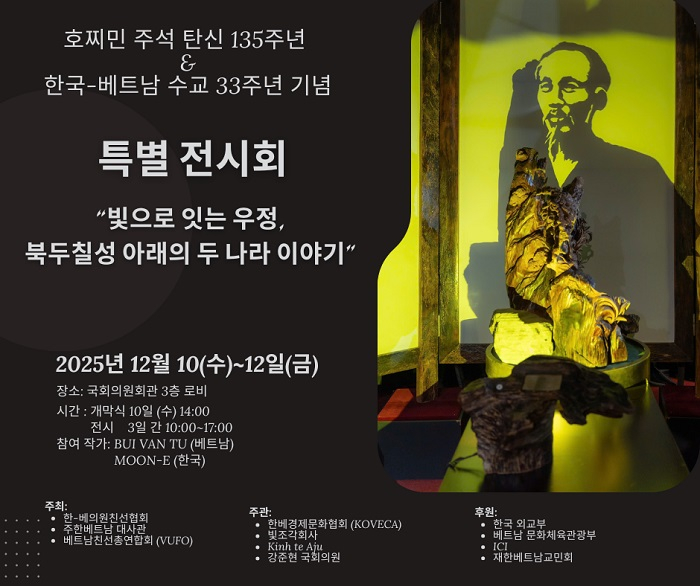 2025년은 베트남 통일 50주년이자 독립 80주년, 그리고 호찌민 주석 탄신 135주년이 되는 해다. 한국과 베트남이 수교 33주년을 맞는 시점이기도 하다. 이번 전시는 양국의 역사적 여정을 되새기며 ‘현대의 빛’으로 이어지는 우정의 의미를 종합적으로 보여주고자 기획됐다.