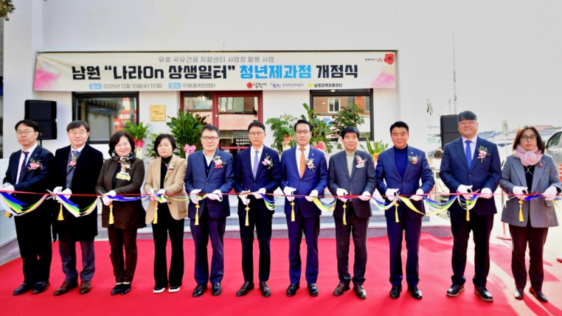 [서울경제TV 남원=최영 기자] 전북 남원시는 10일 유휴 국유재산이던 옛 동충치안센터(파출소)를 리모델링해 조성한 신규 자활근로 사업장 '청년제과점'(용성로 96-3)의 개점식을 개최했다고 밝혔다.