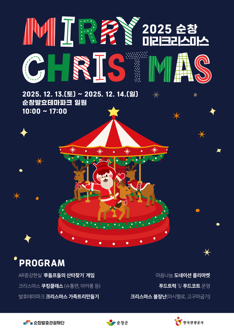 [서울경제TV 순창=최영 기자] 순창발효관광재단은 오는 13일부터 14일까지 이틀간 순창발효테마파크에서 '2025 순창 미리 크리스마스' 겨울축제를 개최한다고 밝혔다.