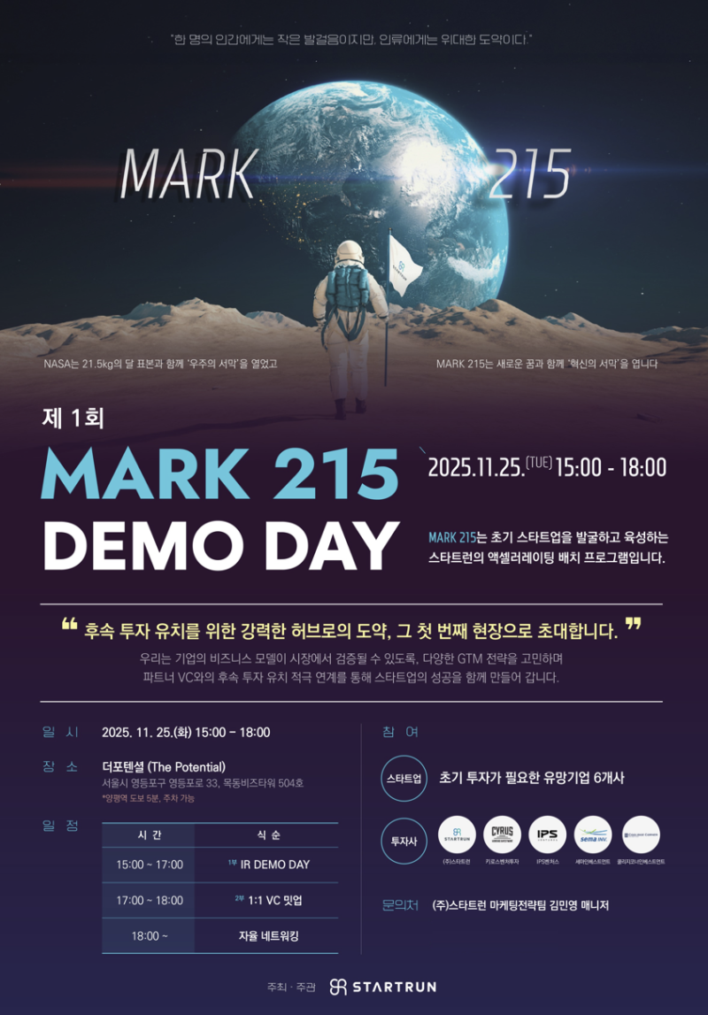 스타트런, ‘제1회 MARK 215 데모데이’ 개최…"초기 스타트업 후속 투자 본격화"