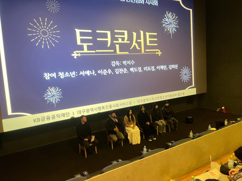 [서울경제TV 대구=김정희 기자] 대구광역시행복진흥사회서비스원(이사장 배기철, 이하 대구행복진흥원)이 KB금융공익재단의 후원을 받아 운영하는 ‘대구 학교 밖 청소년 경제·금융 프로그램 단편영화 시사회’가 지난 10일 메가박스 만경관점에서 진행되었다.