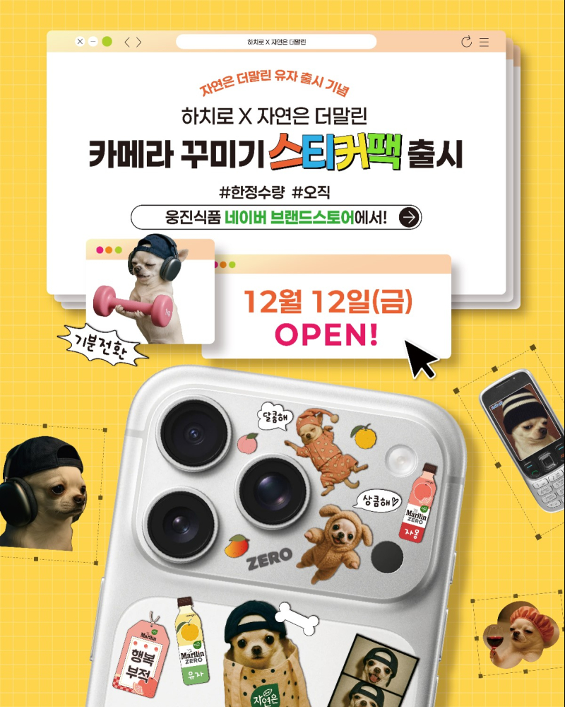 - 6웅진식품 '자연은 더말린', 하치로와 카메라 꾸미기 스티커팩 출시