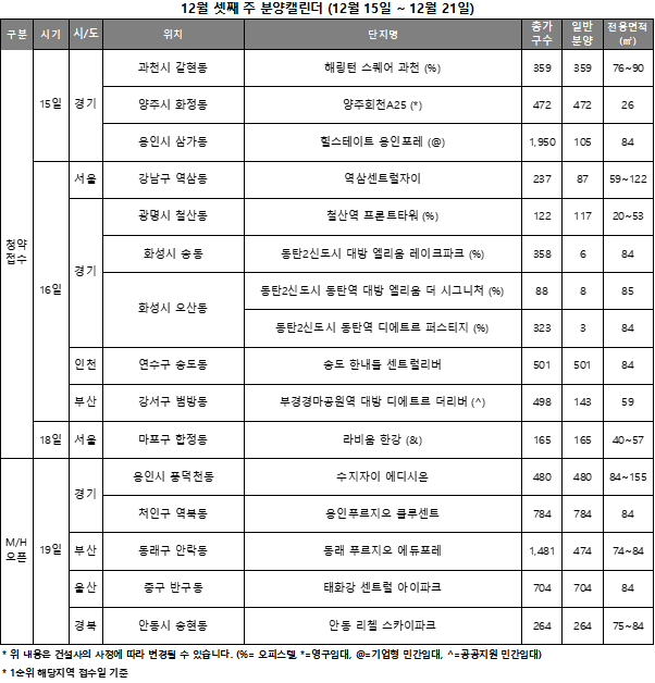 - [부동산 캘린더] 내주 7849가구 공급…"연말 맞이 풍성한 물량"