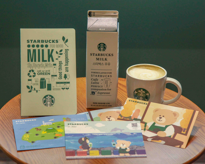 스타벅스는 지난해 10월부터 대전 지역 58개 매장에서 종이팩 회수 시범 사업을 시작하여, 1년간 약 46톤에 달하는 종이팩(우유팩멸〮균팩)을 수거해 노트와 엽서 등의 업사이클링 굿즈로 선보이고 있다. 이는 약 900그루의 나무를 심는 것과 같은 환경적 효과를 가져올 것으로 기대되는 분량이다.