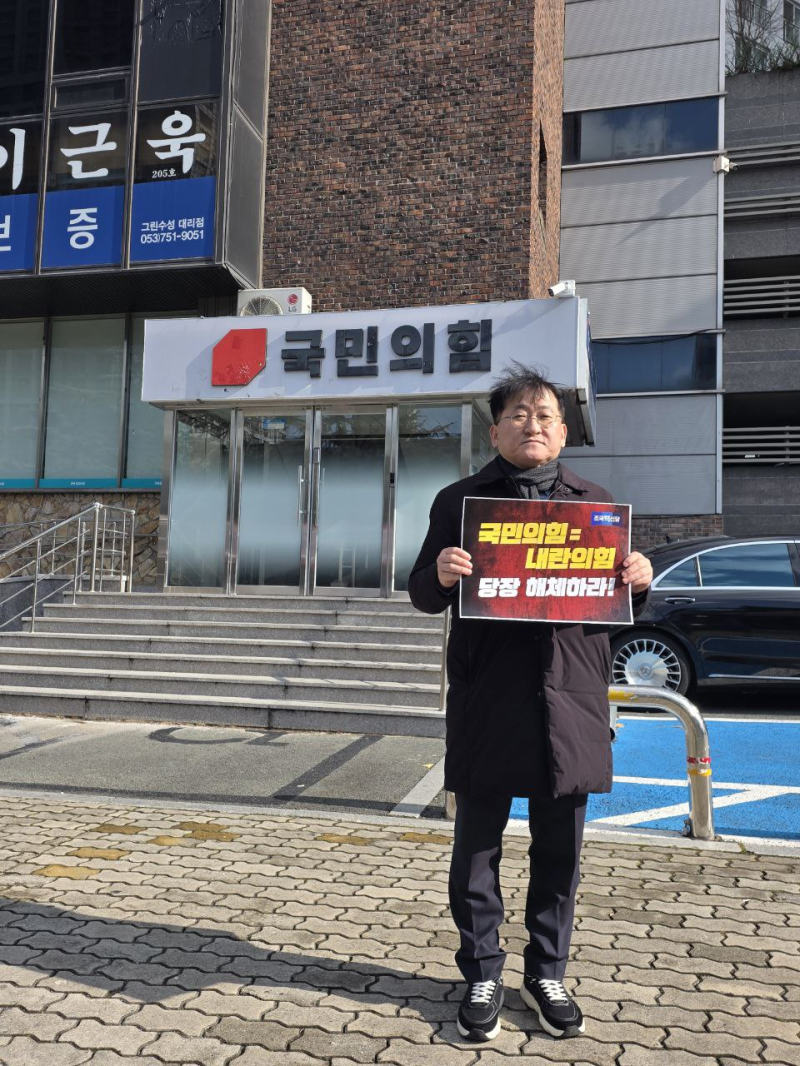 지난 14일 오후 조국혁신당대구시당은 차규근 시당위원장의 국민의힘 대구시당 당사 앞에서 내란에 대한 사과를 요구하는 1인 피켓 시위와 동시에, 국민의힘 대구지역 국회의원 지역사무소 앞 10곳과 경북지역 국회의원 지역사무소 앞 11곳에서 당원들의 내란 사과를 거부하는 의원들을 규탄하는 1인 피켓 시위와 항의서한 발송 활동을 진행했다.