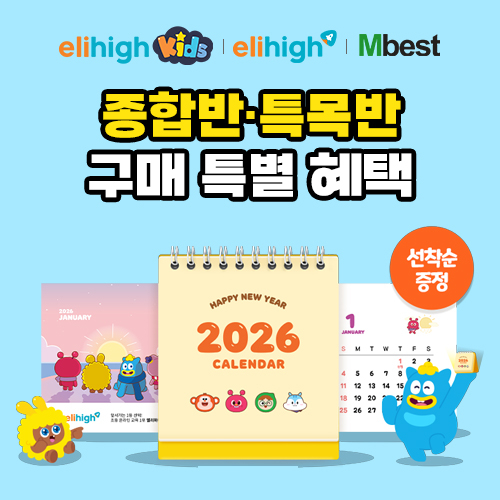 이번 프로모션은 프리미엄 유아 학습지 엘리하이 키즈, 초등 1위 엘리하이, 중등인강 1위 엠베스트의 신규 고객을 대상으로 한다. 유아·초등·중등 종합반 또는 특목반 상품을 신규 구매한 고객에게 각 브랜드의 캐릭터가 담긴 2026 탁상용 미니 달력을 선착순으로 증정한다.
