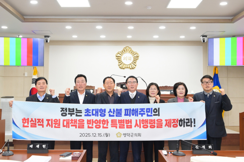 김 의원은 건의안 제안설명을 통해 “지난 3월 25일 발생한 초대형 산불로 주민들은 주거와 생업 기반 전체가 붕괴되는 심각한 피해를 입었다”며 “최근 제정된 특별법이 실질적인 회복의 출발점이 되기 위해서는 시행령 단계에서 주민의 요구와 현실이 반드시 반영돼야 한다”고 강조했다.