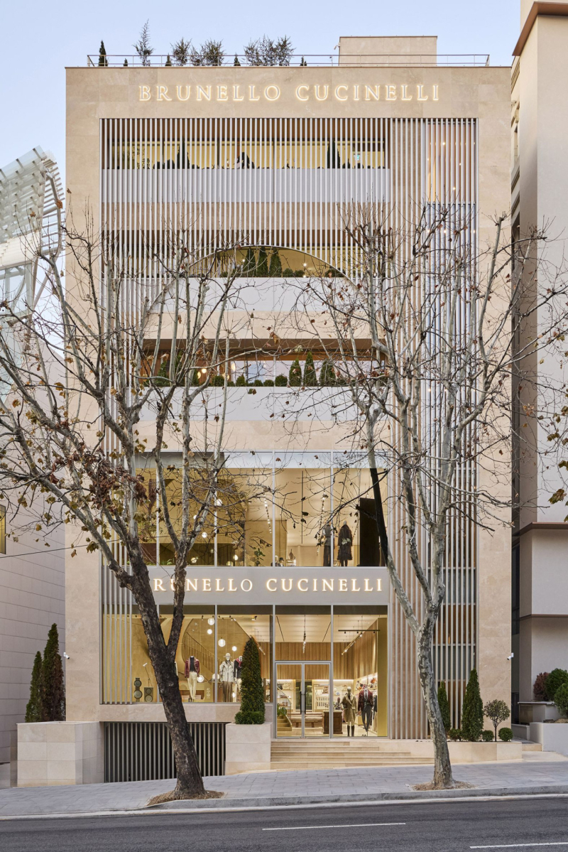 이번 매장은 지상 5층, 총 1723㎡ 규모로 조성됐으며, 브루넬로 쿠치넬리의 철학은 파사드(건물 외관)에서 상징적으로 드러난다. 브루넬로 쿠치넬리는 파사드를 통해 건물이 속한 도시 및 지역 사회와 소통하며, 고객이 입구를 통해 맞이하게 될 장소의 정체성을 보여주고자 했다.