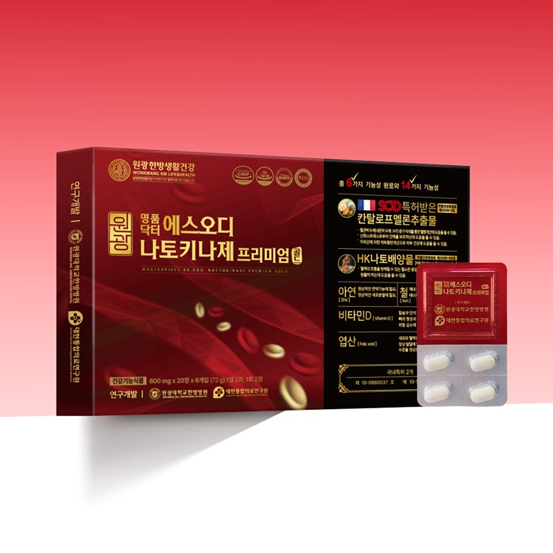 [서울경제TV=이채우 인턴기자] 원광한방생활건강은 원광대학교 한방병원과 대한통합의료연구원이 공동으로 연구·개발한 혈행 건강 기능성 제품 ‘원광 명품 닥터 에스오디 나토키나제 프리미엄 골드’를 출시했다고 17일 밝혔다.