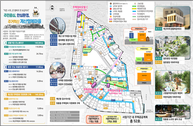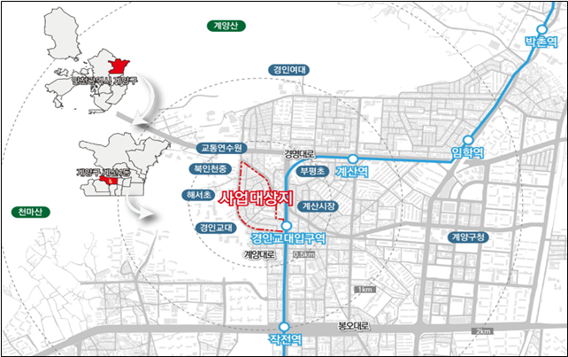 인천시는 국토교통부 주관 노후주거지정비 지원사업 공모에 계산동 일원 사업이 선정돼 국비 148억 원을 확보했다.