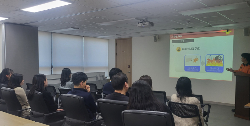 이번 교육은 분당소방서 소방대원 초청 강의로 진행돼 화재 발생에 대한 위험 단계별 소화 조치 방법과 대피 요령 등 상황 별 행동 매뉴얼 교육으로 진행했다.