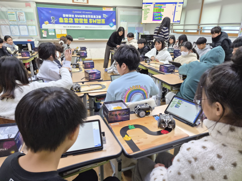 캠프는 12월 19일과 22일 양일간 5학년 8개 학급을 대상으로 진행되며, 학급별로 4교시에 걸쳐 실습 위주의 교육이 이루어진다. 학생들은 태블릿 PC를 활용하여 직접 코딩을 설계하고, 이를 통해 소형 로봇을 구동하며 창의적 문제 해결 능력을 키우는 시간을 가졌다. 특히 복잡한 프로그래밍 언어 대신 블록 기반의 코딩 도구를 사용하여 알고리즘의 원리를 쉽고 재미있게 익히는 데 집중했다.