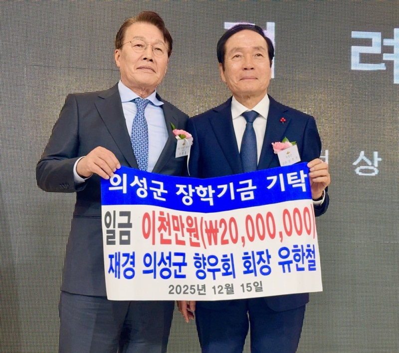 [서울경제TV 의성=김아연 기자] 재단법인 의성군인재육성재단(이사장 김주수 의성군수)은 지난 15일 재경의성군향우회 유한철 회장(서울승합 대표)이 지역 인재 육성을 위해 사용해 달라며 장학금 2천만 원을 의성군에 전달했다고 밝혔다.