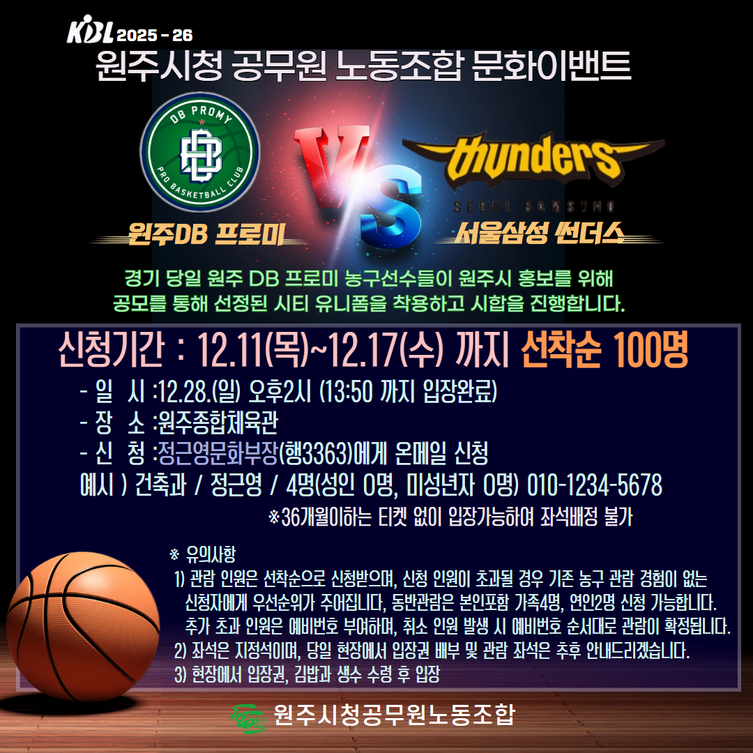 - 원주시청 공무원노동조합, 올해도 원주DB프로미 경기 단체 관람 추진