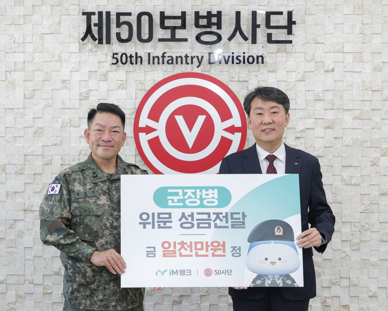 전달된 성금은 군 장병들의 사기 진작과 근무 여건 개선을 위한 복지 지원에 활용될 예정이다. iM뱅크(아이엠뱅크)는 그간 지역사회와 함께 성장해 온 금융기관으로서 국가 안보를 지탱하는 군장병들의 헌신이 지역의 안전과 일상으로 이어지고 있다는 점에 주목해 지속적인 관심과 지원을 이어오고 있다.
