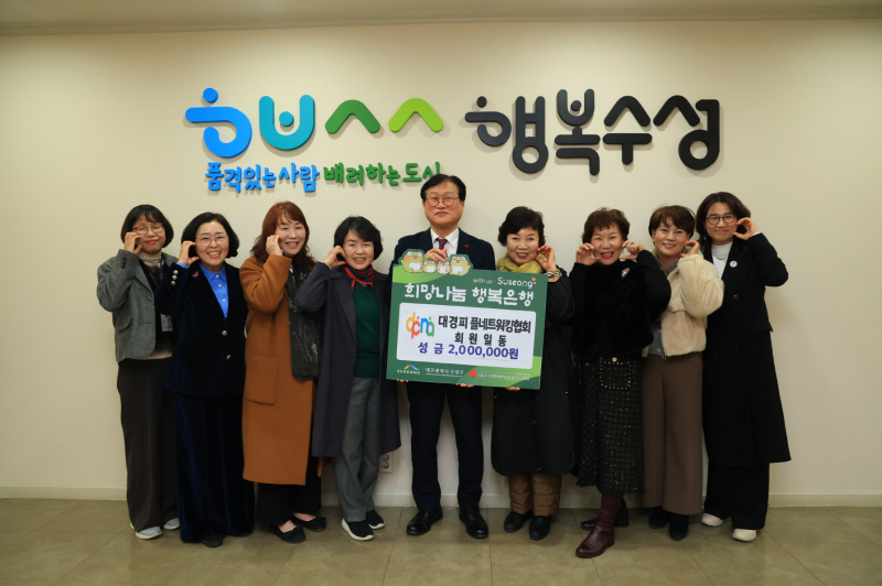 수성구청은 이번에 전달받은 성금을 관내 저소득층을 위한 필요 사업에 사용할 예정이다.