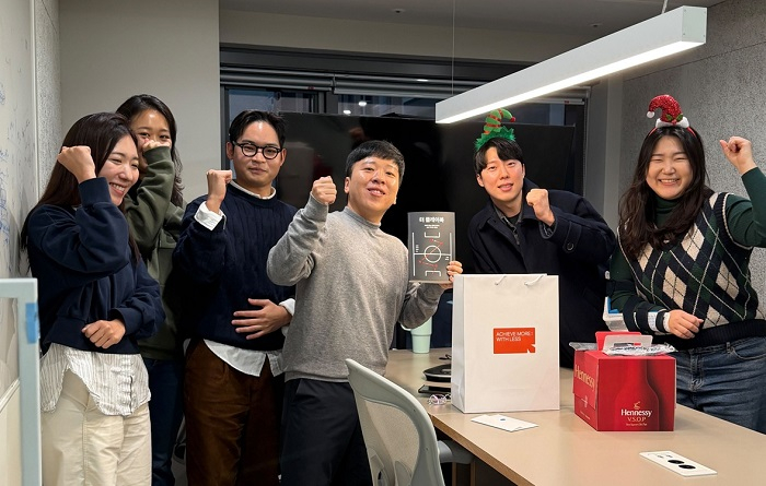 이번 이벤트는 연말에 가장 바쁜 조직 중 하나인 기업의 마케팅·세일즈팀을 응원하기 위해 기획된 것으로, '더 플레이북'을 저술한 김한규 세일즈 리드, 황하운 마케팅 리드, 김가은 그로스랩 리드가 직접 산타 모자를 쓰고 주요 고객사를 방문해 간식팩과 신간 도서를 전달하는 방식으로 진행됐다.