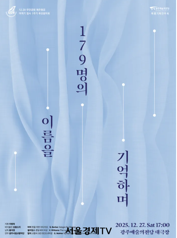 지난 27일 오후 5시 광주예술의전당 대극장에서 광주시립교향악단(광주시향)의 ‘179명의 이름을 기억하며’ 추모음악회가 열렸다. 지난 2024년 12월 29일 제주항공 여객기 참사로 떠난 179명을 기억하며 그들을 마음에 품은 모든 이들에게 작은 위로를 전하기 위한 공연이었다.