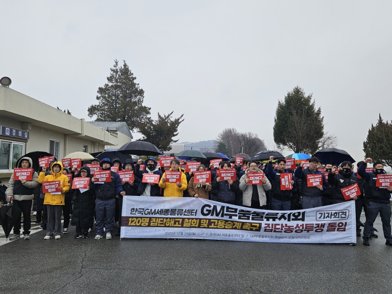 민주노총 금속노조 대전충북지부 GM부품물류지회와 공동대책위원회는 29일 세종물류센터 앞에서 기자회견을 열고 “7월 5일 하청노동자들이 노조를 설립한 이후 원청인 한국GM이 하도급업체 우진물류와의 계약을 해지했다”며 “이로 인해 노동자 120명 전원이 해고 통보를 받았다”고 밝혔다.