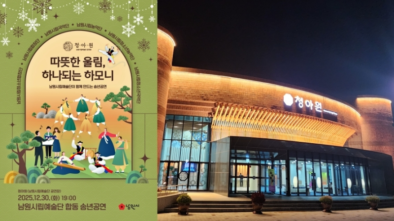 29일 남원시에 따르면 2025년 시립예술단 연말 합동공연 '따뜻한 울림, 하나되는 하모니'가 오는 30일 오후 7시 청아원(남원시 만인로 92)에서 열린다.