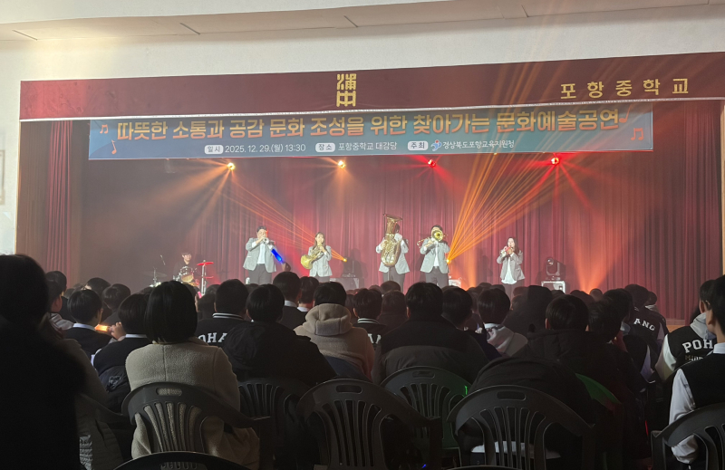 [서울경제TV 포항=김아연 기자] 포항교육지원청은 29일 포항중학교 체육관에서 학생·교직원·학부모 및 Wee센터 상담 인력 등 약 500명을 대상으로 찾아가는 문화예술공연을 개최했다.