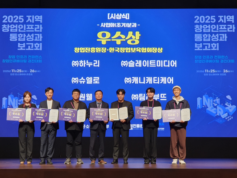 ㈜하누리(대표 박상진)는 최근 인천 인스파이어 리조트에서 열린 ‘2025 지역 창업인프라 통합성과보고회’에서 창업 인큐베이팅 경진대회 사업화 부문 우수상을 수상했다.