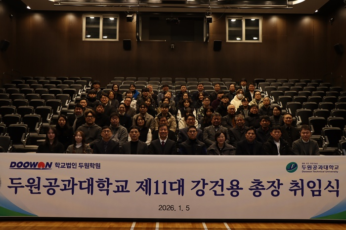 [서울경제TV=박유현 인턴기자] 두원공과대학교(이하 두원공대)는 강건용 총장이 제11대 총장으로 취임했다고 5일 밝혔다. 취임식은 2일 안성캠퍼스와 5일 파주캠퍼스에서 각각 진행됐다.