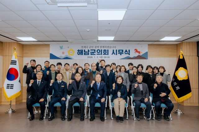 이날 시무식에는 이성옥 의장을 비롯한 군의원들과 의회사무과 직원들이 참석해 새해 인사를 나누고 한 해 의정 방향을 공유하는 시간을 가졌다. 해남군민의 복리 증진을 위해 의회 구성원 모두가 책임 있는 역할을 다하겠다는 각오도 함께 다졌다.